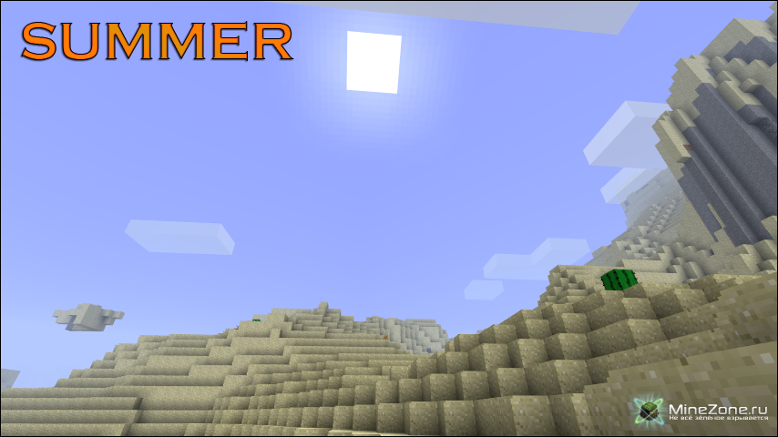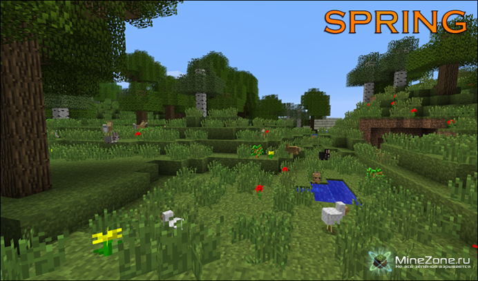 - При переходе от сезона к сезону, появится надпись, сообщающая текущее время годаЛето:Очень много дождей с грозами. В Снежных биомах летом будет идти дождь. Пшеница будет расти в 1,5 раза быстрее, чем в любое другое время года. Если же вы попадете в пустыню летом, а на Вас не будет брони, защищающей от солнца (кожаной брони), то Вы просто-напросто умрете от солнечного удара и ожогов. Летний дождь уничтожит большинство растений, выращенных весной. Так же лето будет уничтожать весь снег, встретившийся этому времени года на пути.Осень:Трава и листья поменяют свой окрас. Также вы получите бонус при сборе урожая пшеницы.Зима:Зимой везде, кроме пустыни, будет идти снег. В холодных биомах, вроде тайги и ледяной пустыни, есть шанс получить обморожение и умереть. Во избежание этой незавидной участи, носите доспехи из кожи.Весна:Высокая трава и растения будут расти на поврежденных блоках, пострадавших от палящего солнца лета.Часы сезонов