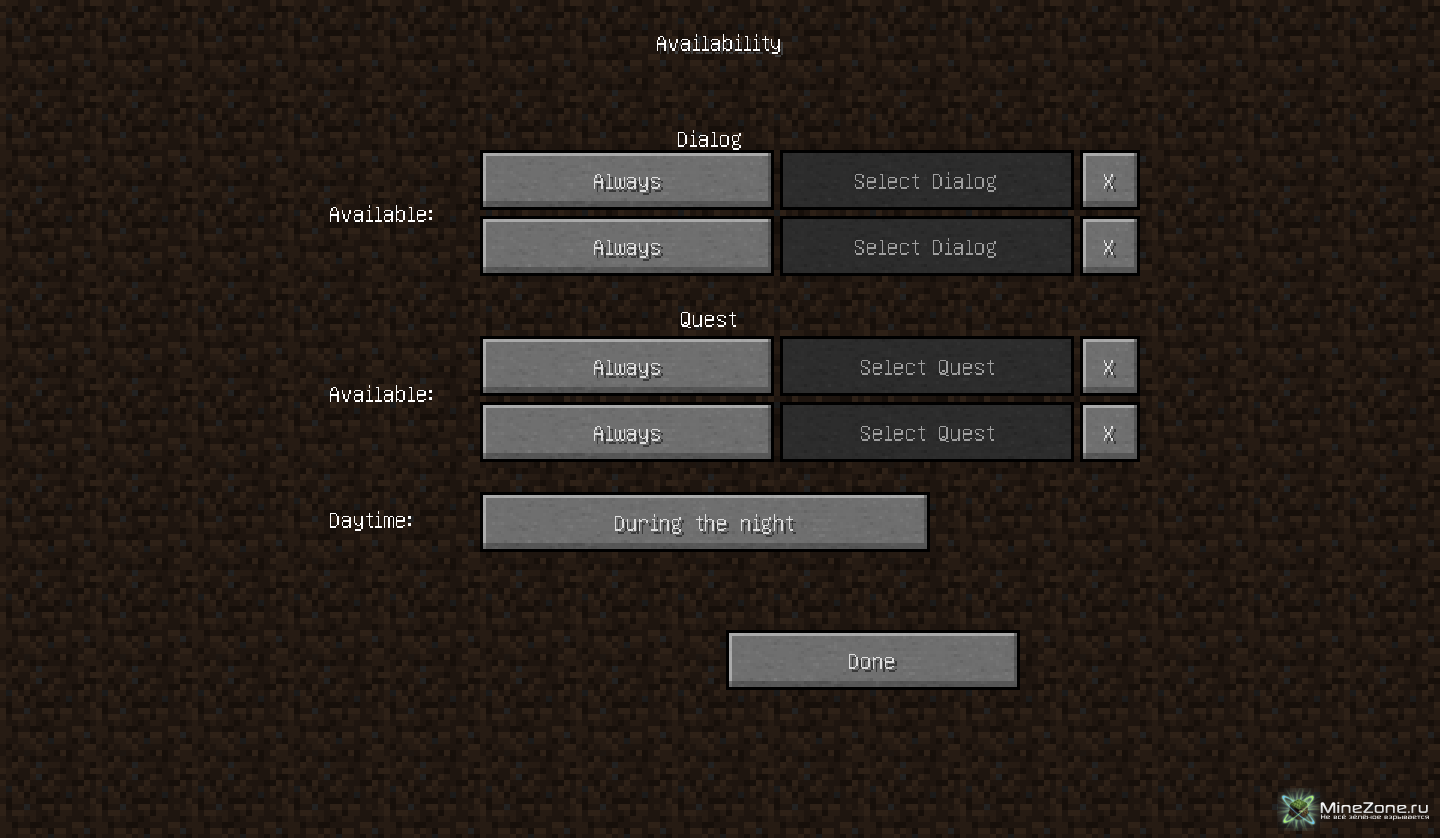 Так же есть Availability options. Там можно редактировать доступность диалогов и квестов.