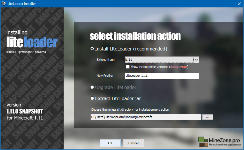 LiteLoader - это базовая модификация, обеспечивающая работу других модов, которые не вносят изменений в механику игры. Преимущества этого загрузчика состоят в том, что он полностью совместим с Forge, а его установка не вызовет вопросов.
