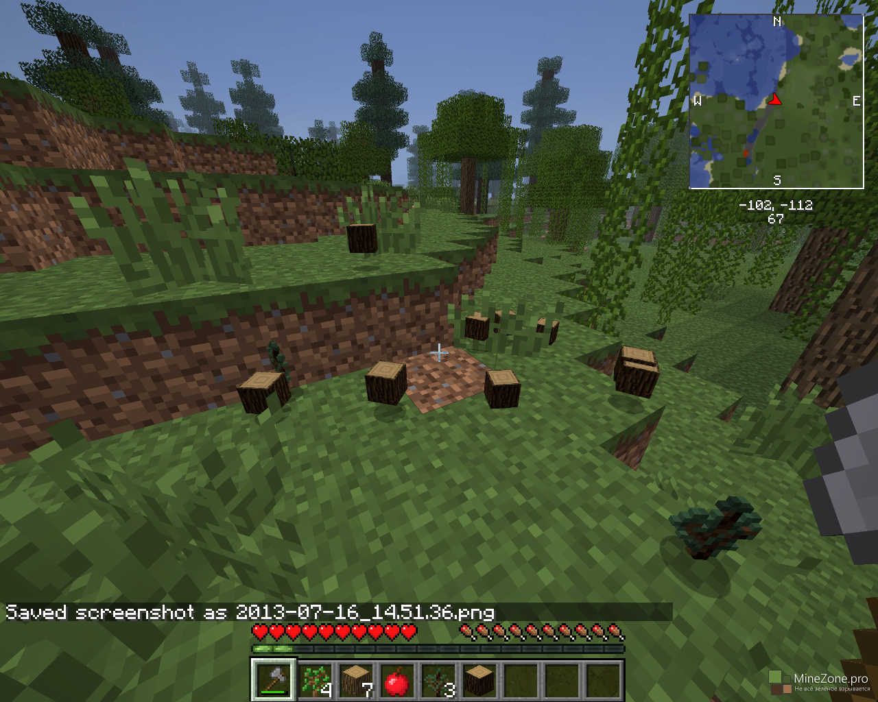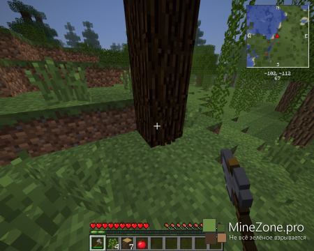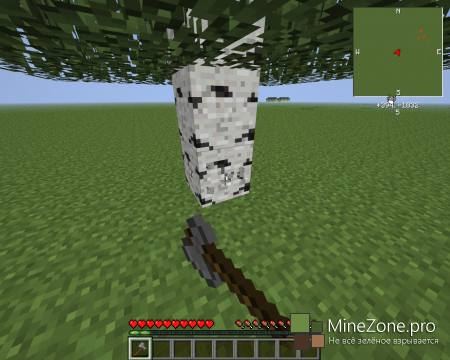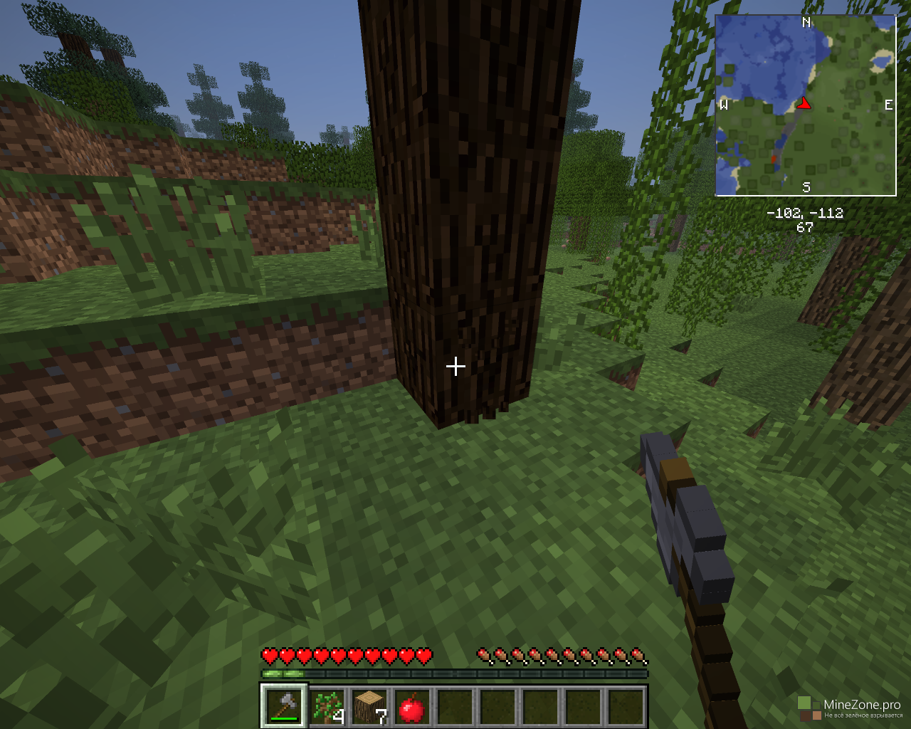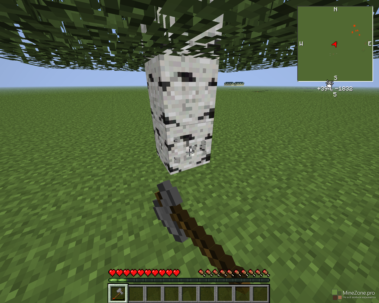 Данная модификация позволяет нам сэкономить уйму времени на лесорубке. Теперь, вместо того, чтобы срубать лес полчаса, вы сможете это сделать за 5 минут. При этом, всё, что вам надо сделать - сломать нижний блок дерева, а все остальные блоки сломаются сами. Стоит заметить, что прочность топора так же снизится, как если бы вы рубили дерево без участия мода. Модификация не будет работать при нажатии и удержании клавиши Shift.