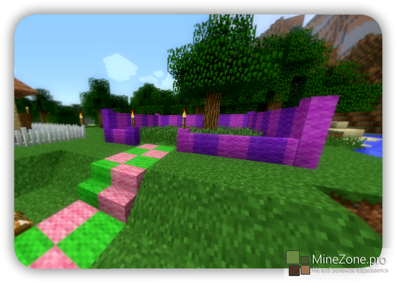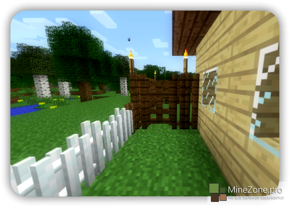 Высотой в полтора блока, меняет текстуру аналогичную блоку, которым по нему кликнули. ЛКМ или ПКМ по плотницкому забору молотком плотника изменяет форму забора.