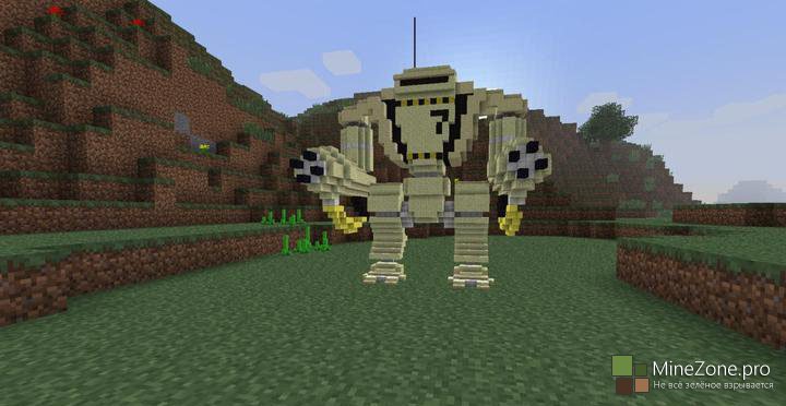 Эта замечтальная модификация во всех смыс[jq] слова, добавляет в игру возможность строить маленькие дома, города и так далее. Для начала, из блока земли крафтим следующую чапокабру: