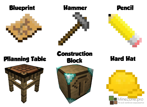 Hammer: Материалы, размещенные в строительство блока, и вы нажали кнопку Пуск, вы должны будете получить молотком. Вы начинаете процесс строительства, ударив молотком по Строительной отрасли. Теперь, где это становится очень уникально! Каждые 10 хитов на строительство блока, он будет генерировать 1 слой, начиная с нижней части, пока не дойдете до вершины. Мне очень понравилась эта идея, и это действительно отличает ее от каждого мгновения / строительство модов .