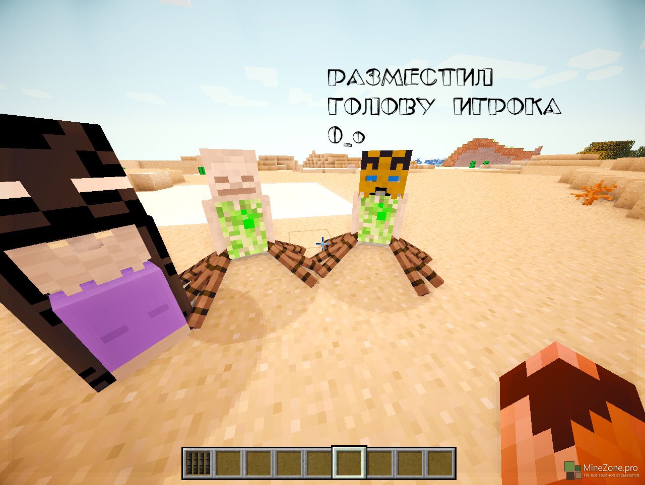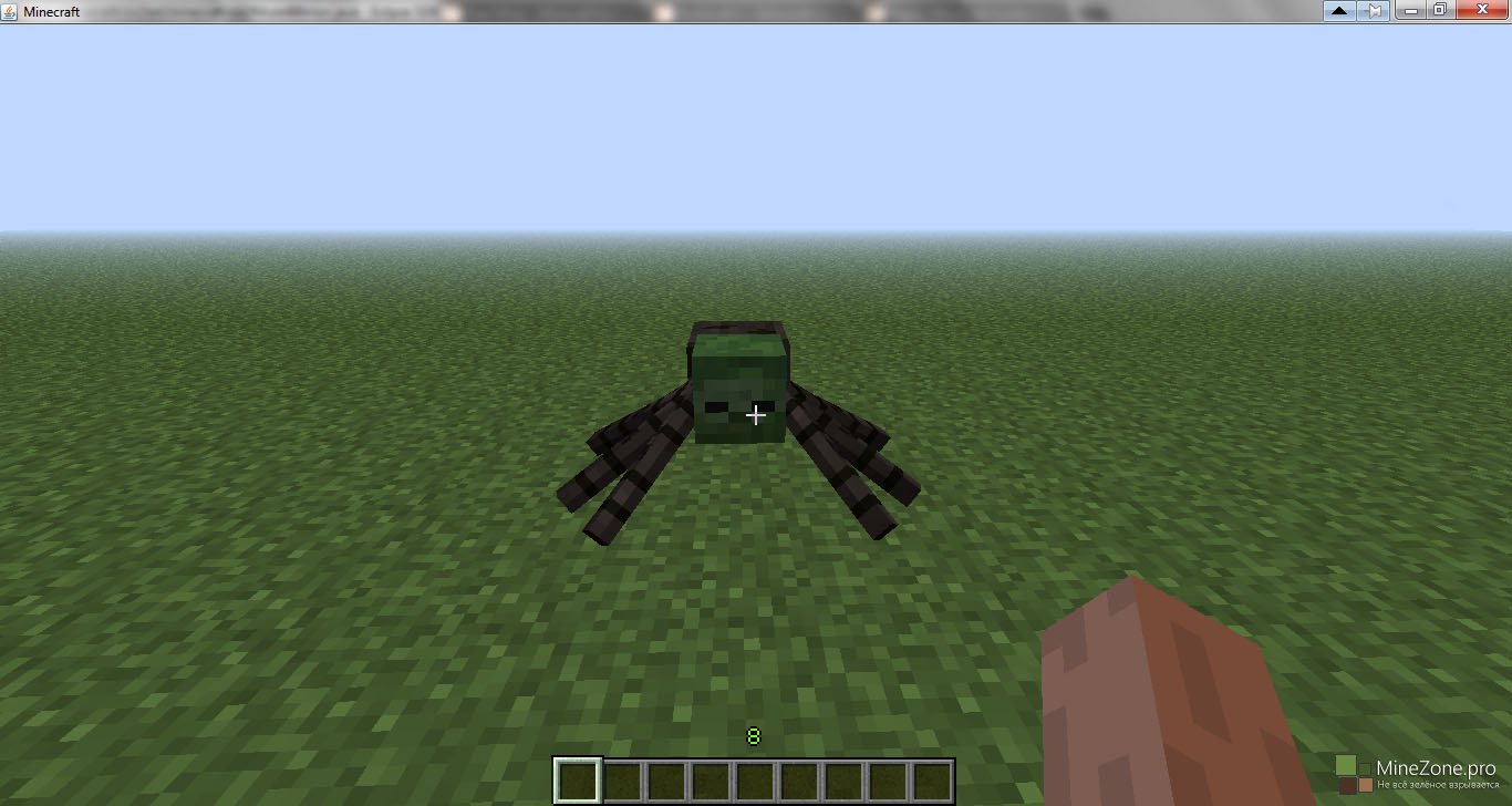 Если разместить при создании моба туловище паука, то созданного в дальнейшем моба можно будет оседлать. Правда, для управления новым транспортом нам потребуется мозг на палочке: