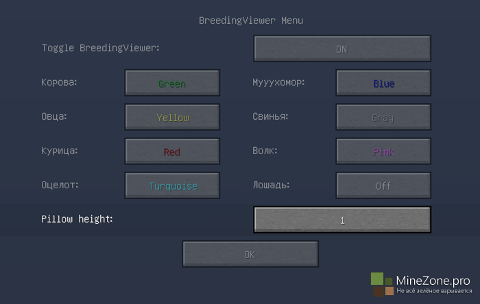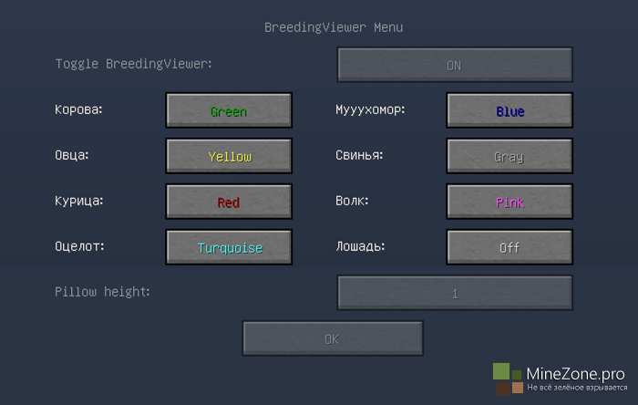Высота маркера: на максимальной дальности прорисовки, благодаря ей, будет видно животных, с установленными маркерами в радиусе 80 блоков.