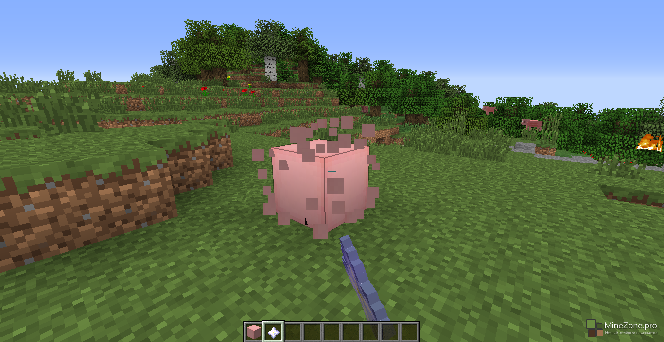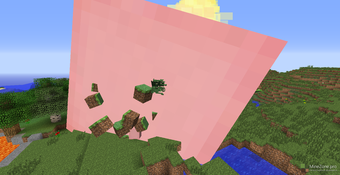 Итак, камрады, приготовиться к десантированию свиньи-мутанта! О противнике известно то, что он буквально прилетает из космоса в виде гигантской головы свиньи, после чего у головы появляются недостающие конечности, и монстр начинает бродить по миру, уничтожая на пути все живое. Убить чудище не представляется возможности, нам остается только ждать, пока оно само не выпадет за пределы мира. Но не отчаивайтесь, свинью можно оседлать при помощи удочки с морковкой (ПКМ по ноге чудища). Да здравствует накал идиотии! Гип-гип ура!