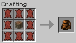 Чтобы вернуть рюкзаку стандартный цвет, поместите покрашенный рюкзак в верстак, а рядом с ним разместите обычную/обожённую кожу соответственно:
