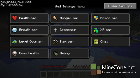AdvancedHUDmod позволят вам настраивать свой игровой интерфейс как вам удобно. Сверху вы можете посмотреть меню настроик интерфейса.