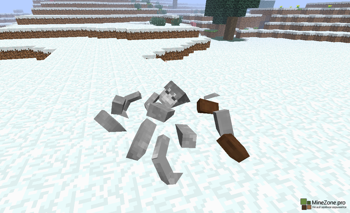 Удалось одолеть Скелета-Мутанта? Впечатляет. При смерти Скелет-Мутант разлетится на части, какой-нибудь костью вам может прилететь, так что будьте бдительны. После победы смело собирайте разбросанные по земле косточки, они нам ещё понадобятся