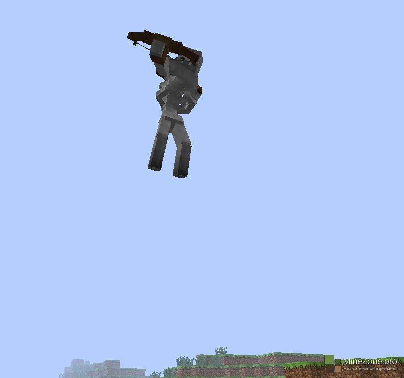 Не зря в руках у этого звенящего костями типа красуется лук. Именно он и пойдёт в дело, когда вы окажитесь на приличном расстоянии от Скелета-Мутанта. Выстрел отнимает большое кол-во жизней, при этом ещё накладывая различные отрицательные эффекты на игрока, такие как: замедление, яд, слабость и т.д. Само собой, даже столь мощному существу придётся потратить некоторое время для того, чтобы натянуть тетиву лука. Пока Скелет-Мутант готовится к выстрелу, у вас есть возможность его предотвратить – кликните ПКМ по скелету, прицел собьется
