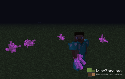 Как и другие мутанты, этот при смерти сделает вам сюрприз. Умирая, эндерман-мутант начнёт испускать частицы, взрывоопасные частицы