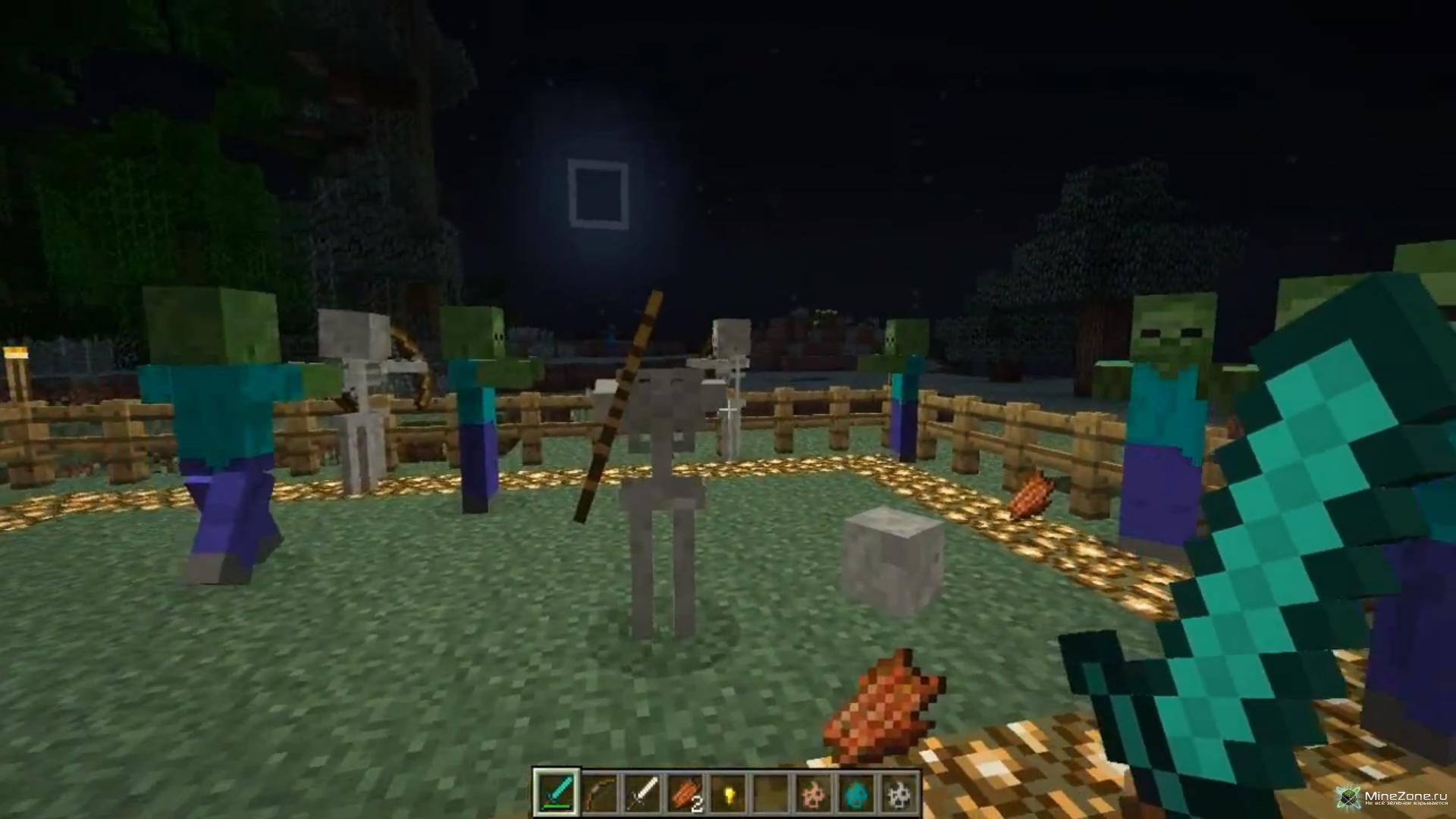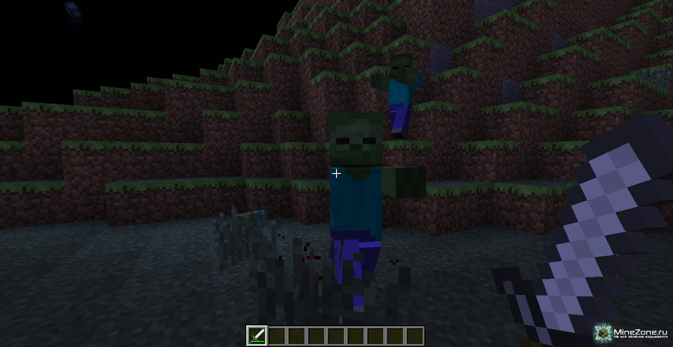 - Расчленять можно только скелета, зомби и свинозомби;