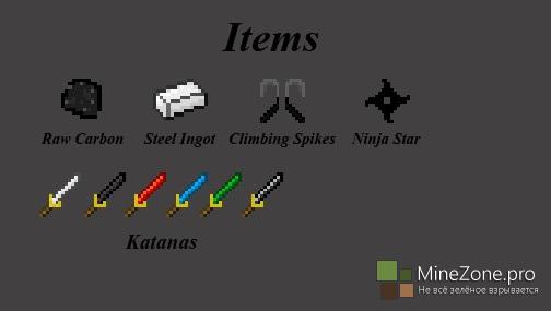 В игре Minecraft существуют не только мобы или боссы, но и такие проблемные игроки как крипперы, с которыми вы частенько сталкиваетесь. Они нападают неожиданно и резко. И мы решили вам помочь. Скачав и установив наш мод, вам будет доступны не только красивая одежда ниндзя, а и всеми известный самурайский меч. С его помощью вы сможете убить даже самого сильного моба почти одним ударом, не говоря уже об обычных мобах, которых вы будете ложить «одной левой». А так же в данной модификации вам будет доступны все приемы ниндзя, для борьбы в рукопашном бою.