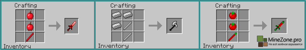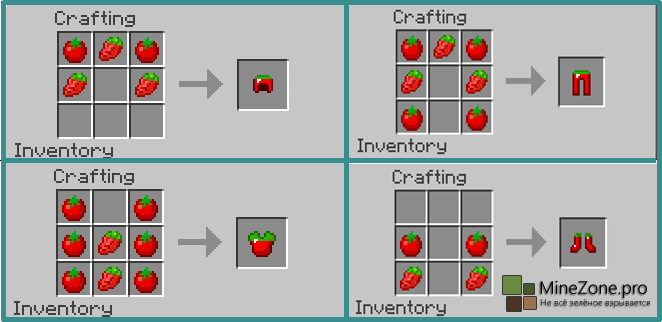 TazerCraft - авторы данного мода решили немного подзабавиться с игроками и выпустили такую модификацию. После установки мода в игру будут добавлена такая штука как томат. И теперь все, оружие, броня и некоторые предметы будут сделаны из томата. Никакой тут фишки по броне или по дамагу нет, это просто мод, который зарядит вашу обстановку и позволит вам немного поразвлечься с друзьями и другими игроками. Так же популярность данной модификации растет с каждым днем, ведь некоторым игрокам надоело гоняться за броней, они желают просто поразвлечься.