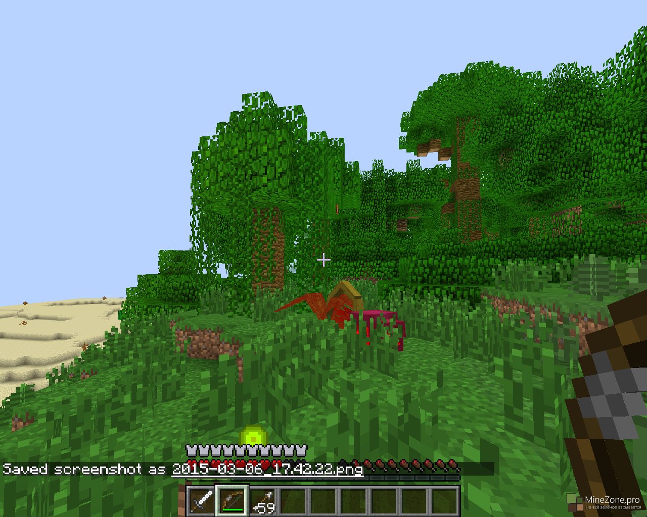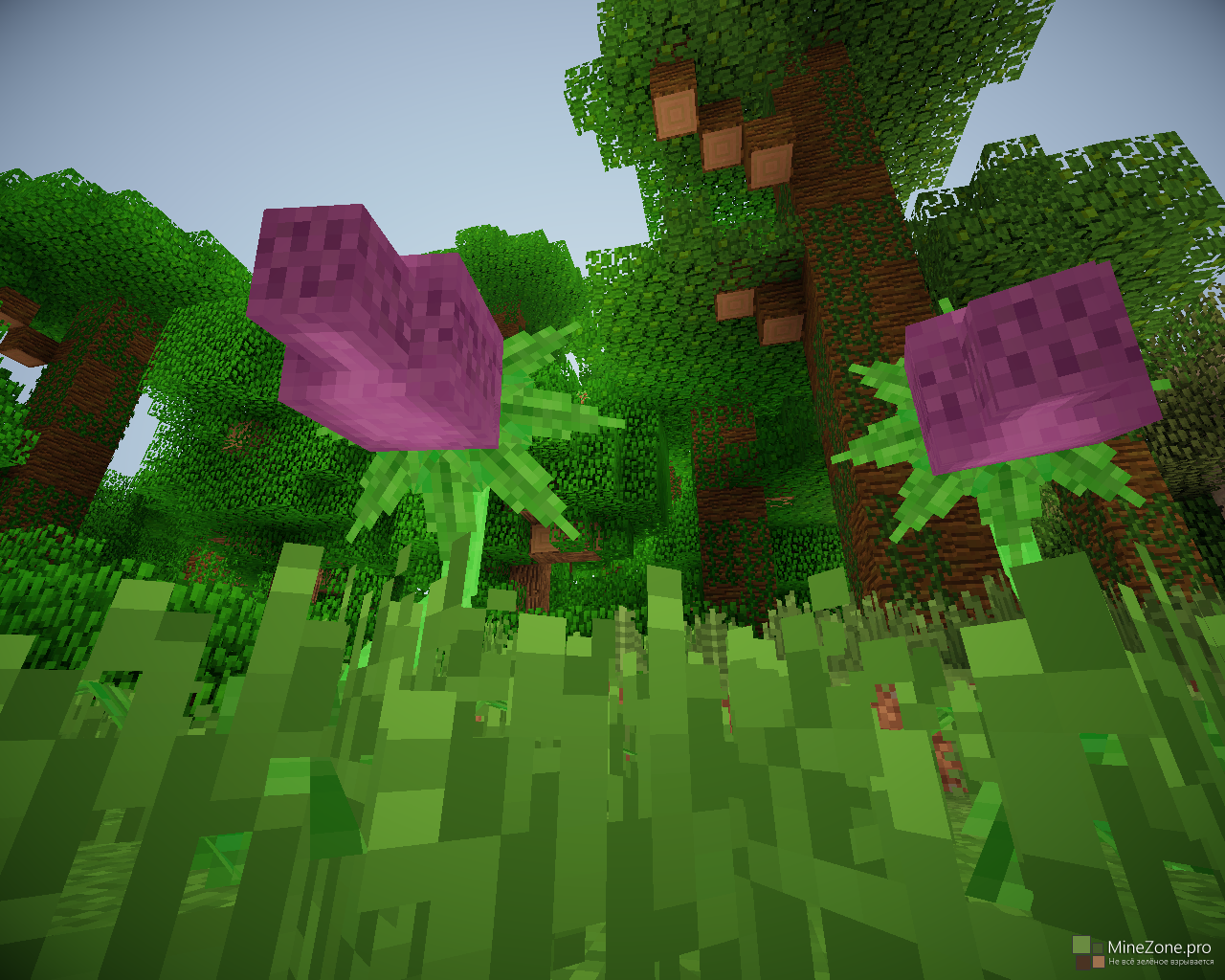| Данная модификация довольно оригинальна, во всяком случае, ранее я не встречал подобных. Теперь ваши прогулки по джунглям превратяться в настоящее выживание, ведь отныне на каждом углу вас может поджидать Фолиант - хищное растение. Вся суть в том, что его очень трудно заметить: пока вы не приблизитесь к достаточно близко, существо будет замаскировано под куст. Стоит отметить, что этот хищник враждебен абсолютно ко всем. Все действия моба сопровождаются качественной и красивой анимацией, например, когда он завидит жертву, но не сможет её сожрать, Фолиант будет жадно смотреть на неё, высунув язык. Победить данное существо в ближнем бою крайне сложно, поэтому, ищите другие способы. Есть возможность уворачиваться от пасти Фолианта, что требует некоторой сноровки |