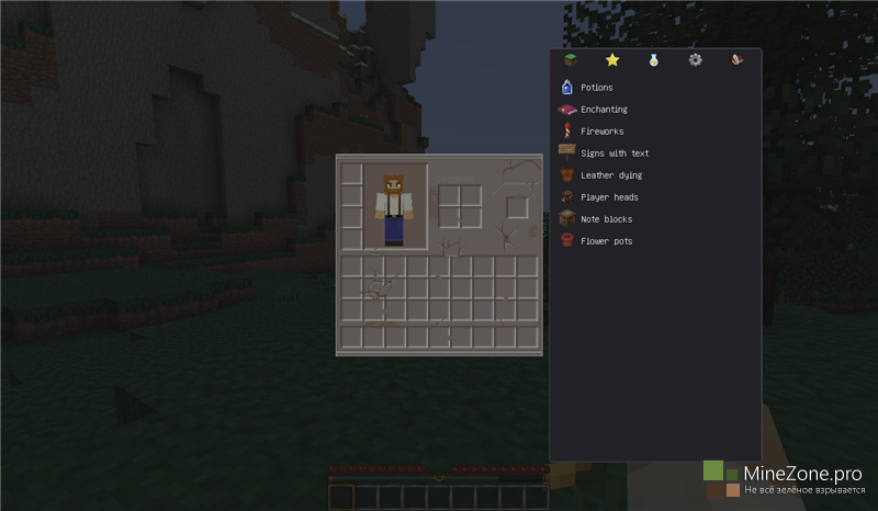 - Расширенные панели чар, зелий и фейерверков;