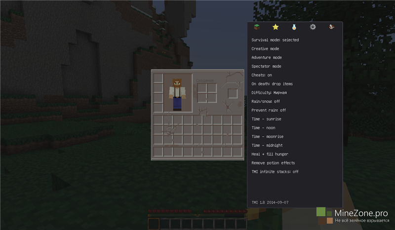 Создавай и настраивай вещи, которых даже нет в креатив-режиме. Сохраняй и загружай собственные профили. Изменяй время, режим игры и погоду, а также многое другое!