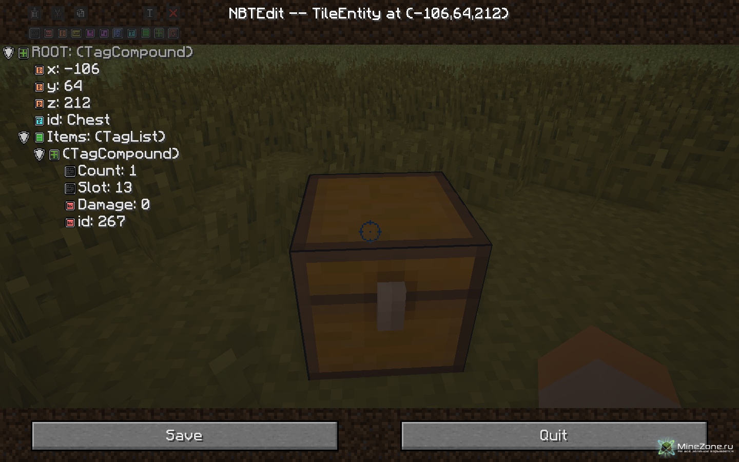 NBTedit - программа, позволяющая редактировать предметы, мобов.