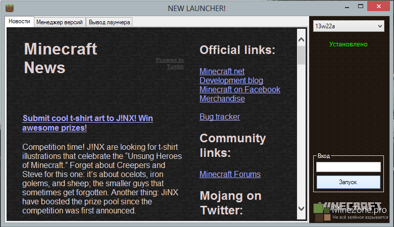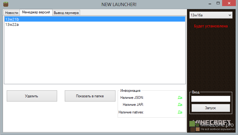 С помощью данного лаунчера вы сможете играть в новые снапшоты начиная с 13w16a!