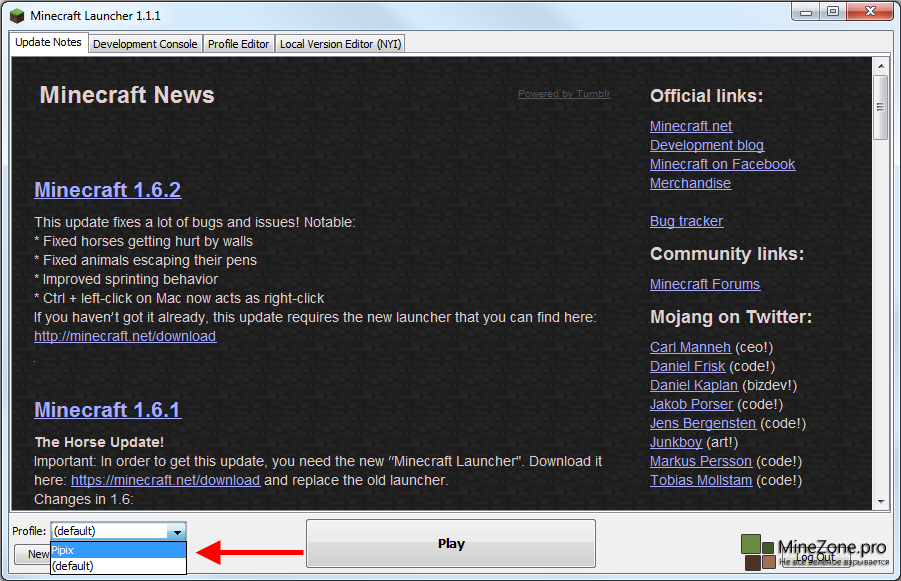 Pipix утилита позволяет изменить версию игры, а также установить список Модов, TexturesPack и Maps, легко и очень быстро, за несколько кликов.