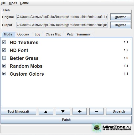 [1.1][update 1/9] MCPatcher HD fix 2.3.1 Категория: Скачать / Программы Использование:1. Ставим везде галочки кроме Better Glass.2. Нажмимаем Patch.3. "Кидаем" текстуры в папку текстур паков.4. В игре выбираем текстуры.Скачать можно тут - mcpatcher-2.3.1.exe [1.2 Mb] (cкачиваний: 3 056)