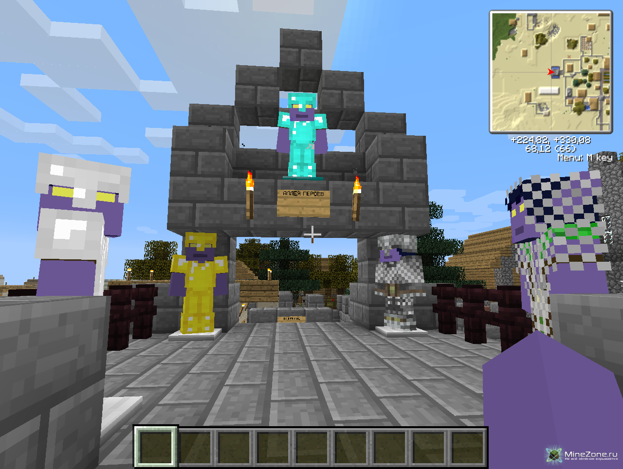 для игры нужны вот такие моды: 1) [1.2.4] Animal Bikes v1.11.1 [SSP][SMP] (added Iron Golem) , 2) [1.2.4] Rei's Minimap 3.0_04 , 3) [1.1 и 1.2.4] Armor Stand , 4) [1.2.4] Millénaire - Деревня с жителями v2.3.7 .