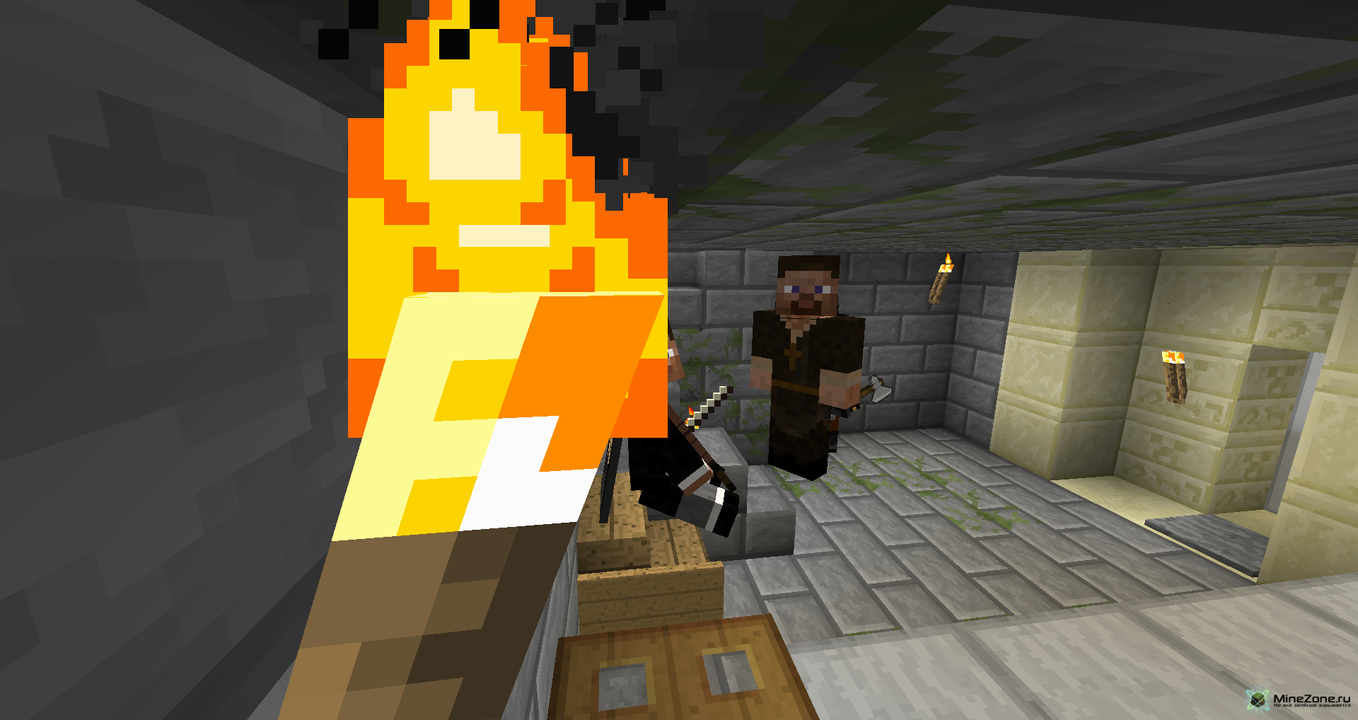 Для тех кто не играл в прошлую версию: карта напоминает рпг игры, а точнее вы сможете побродить по пещерам и убить страшных монстров которые там обитают, купить броню и оружие у продавцов,Добыть руду и дерева и скрафтить себе меч, взять квест и выполнить его.