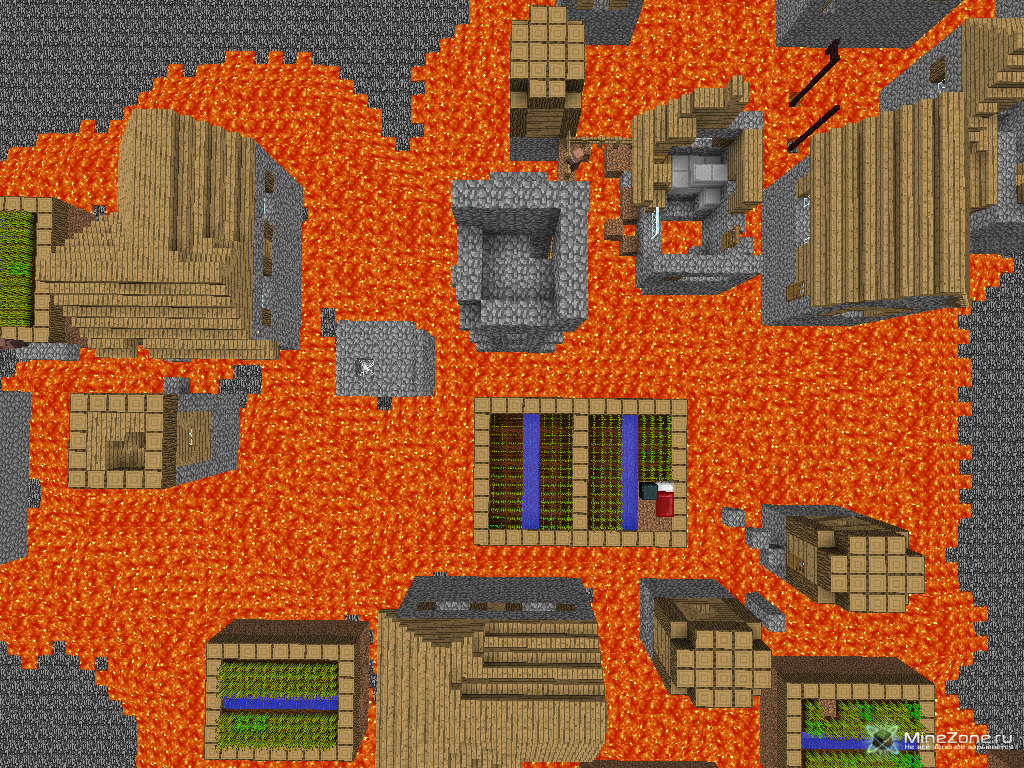 Это простая джамп карта с некоторыми трудностями. Вы спавнитесь в одном из домов деревни, в которую залилась лава, это можно сказать "Лавакалипсис" в прочем, как и название этой карты.