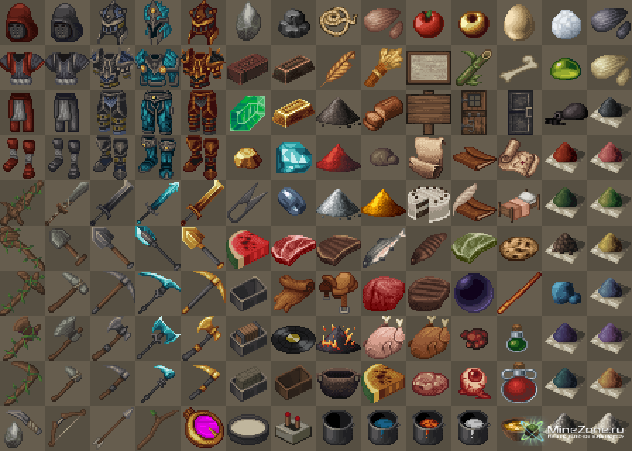 - Анимированные текстуры (Руды, факелы, печь).