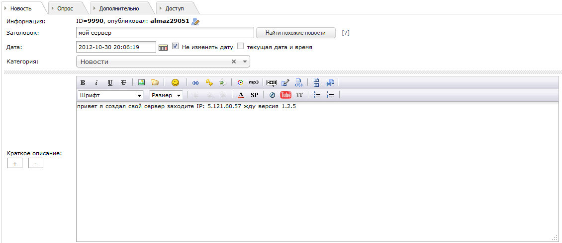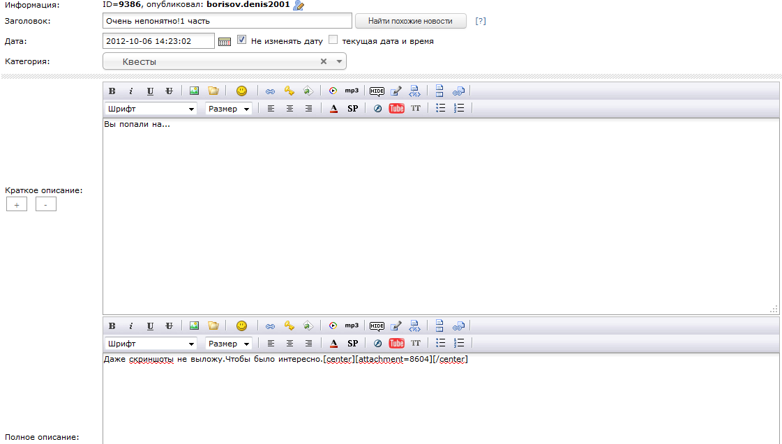 Бородатая предыстория: многие пользователи пытаются выложить на наш сайт свои новости, все бы ничего, да качество иногда оставляет желать лучшего. Также задается целая уйма преглупейших вопросов, от которых хочется кататься по полу, схватившись за живот. Ну, приступаем!