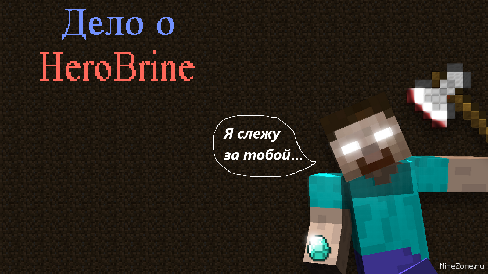 Я решил расследовать дело о загадочном игроке HeroBrine, которого якобы видели в игре MineCraft. По совету друга я решил создать новый мир, в генерации которого следовало написать "404". После создания мира я вошел в игру, все было привычно, за исключением того что играла музыка, но я ведь убирал звук! Когда я проверил настройки, убедившись в том что звука в игре быть не должно, я вернулся в игру, музыка продолжала играть, но с небольшими искажениями... после того как я немного побродил по миру, игра начала зависать, на несколько секунд появлялся черный экран, и вдруг передо мной оказался HeroBrine, в чате появилось сообщение "доигрался", после чего компьютер выключился, я прибывая в состоянии шока, все же включил его, включался он очень медленно, не как обычно. После включения открылся браузер, и вместо стандартной страницы стоял HeroBrine, его взгляд был опущен, и вдруг он резко посмотрел на меня, я вздрогнул, из колонок начал доносится голос, с каждой минутой он становился все отчетливей, голос повторял одно и то же: "Уйди, или будет хуже". Я выключил браузер и удалил игру, я немного успокоился, и решил немного посмеяться, и вдруг из колонок донесся голос "молодец". Через пару недель после произошедшего мы говорили с моей подругой, и она рассказала что её антивирусник предложил перейти по ссылке, и скачать обновление, когда она перешла по предложенной ссылке, там была лишь фотография HeroBrine, но после обновления страницы, открылся сайт касперского. HeroBrine, быть может это всего-лишь фишка игры, которую разработчики от нас скрывают. Быть может это что-то, что не дано понять людям. В любом случае HeroBrine есть, и не стоит спорить с ним.