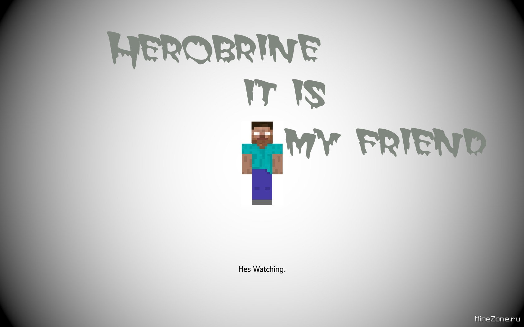 Я обходил весь замок где-то 5 минут и встретил по дороге Херобрина, который делал крышу из булыжника. Когда я подошел к нему ближе, в чате высветилось “Hello… people…”. Я видел, что ему это делать долго. Поэтому решил ему помочь. Вроде всё было хорошо, он наверно не настаивал, что я ему помогаю. Вдруг переключаясь по предметам, я случайно поставил стеклянный блок. Начинаю его убирать, но меня что-то откинуло к стене, и отняло 5 сердечек жизни. Я повернулся и увидел, что херобрин стоит передо мной. Потом он взял булыжник и продолжал строить. Наверно ему не понравилось, что я ошибся, когда поставил стекло. Я перестал помогать и пошел снова в зал. Там по середине стоял торт Т_т. И табличка с подписью “Eat…”. Ну я подумал что кому кроме меня, Херобрин может предложить есть торт. Я съел половинку торта, и пошел разглядывать замок дальше, только пошел вниз. Дойдя до самого подземного этажа, я увидел какую-то постройку. Что-то типа для памяти. По бокам стояли адские камни и освещали всё факелы редстоуна. А по середине всего была картина, но эту картину в игре я ни разу не видел из всех. Даже вошел в minecraft.jar и посмотрел, там не было такого. На ней был изображен Херобрин с каким-то игроком рядом. У этого игрока был не совсем нормальный скин.