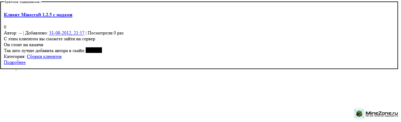 Посты с плохим оформлением были и будут, но здесь есть свое "НО". Ребята, чем вы руководствуетесь, когда выкладываете на сайт домик из земли или мод, с одной лишь ссылкой на скачивание? Неужели, вы думаете, что пост на самом деле попадет на сайт? Во вторых, обзоры модов и "машинимы". Простите, но когда я слышу писклявый голос 12-ти летнего подростка, мне просто так и хочется подарить родителям ремень, чтобы их чадо занималось полезным делом, а не фигней страдало. Правильно говорят: раньше все веселились и играли, а теперь все это веселье надо непременно заснять и выложить на youtube, чтобы всех стошнило от вашего бессмысленного творчества. Так что, перед тем, как выкладывать новость на сайт - подумайте 5 раз и прочитайте правила оформления статей! Дабы не показаться пустозвоном, посмотрите лишь парочку примеров "замечательно оформленных статей":