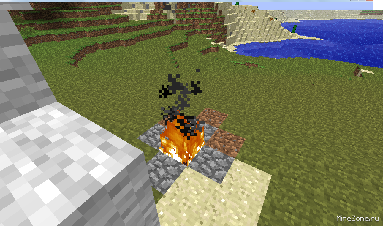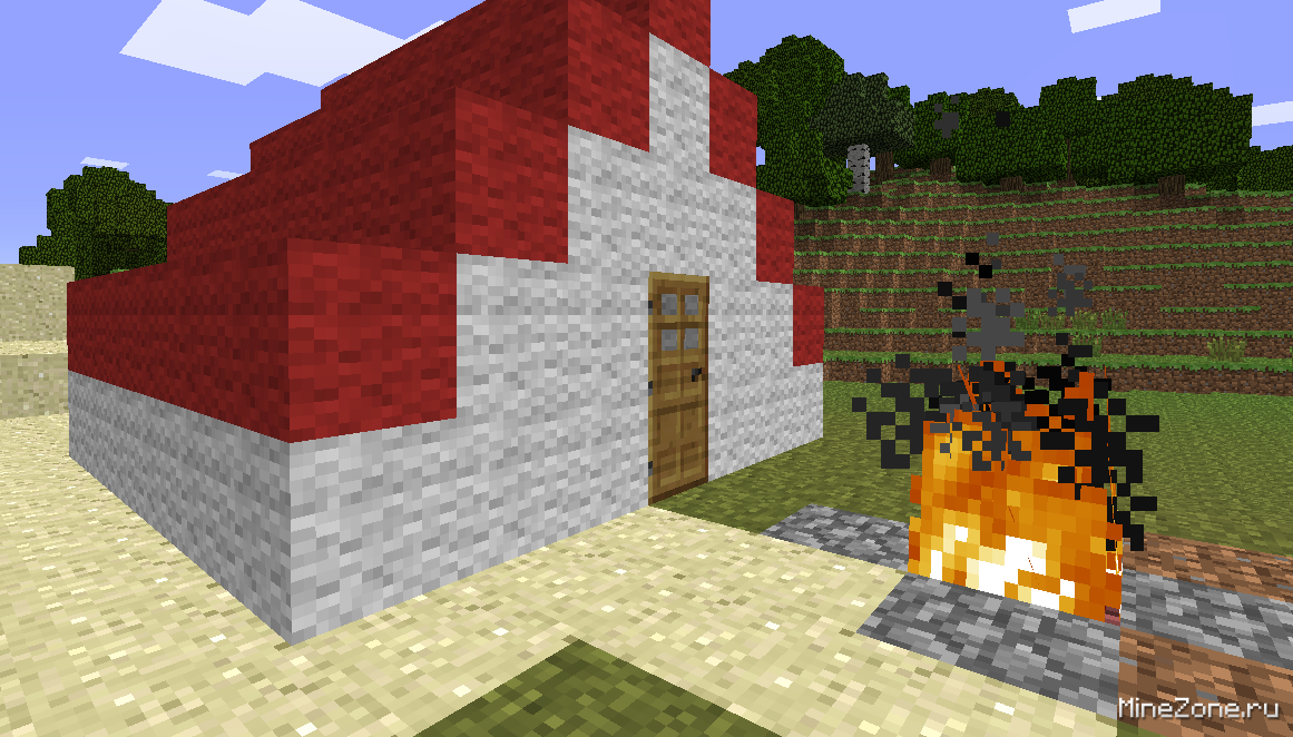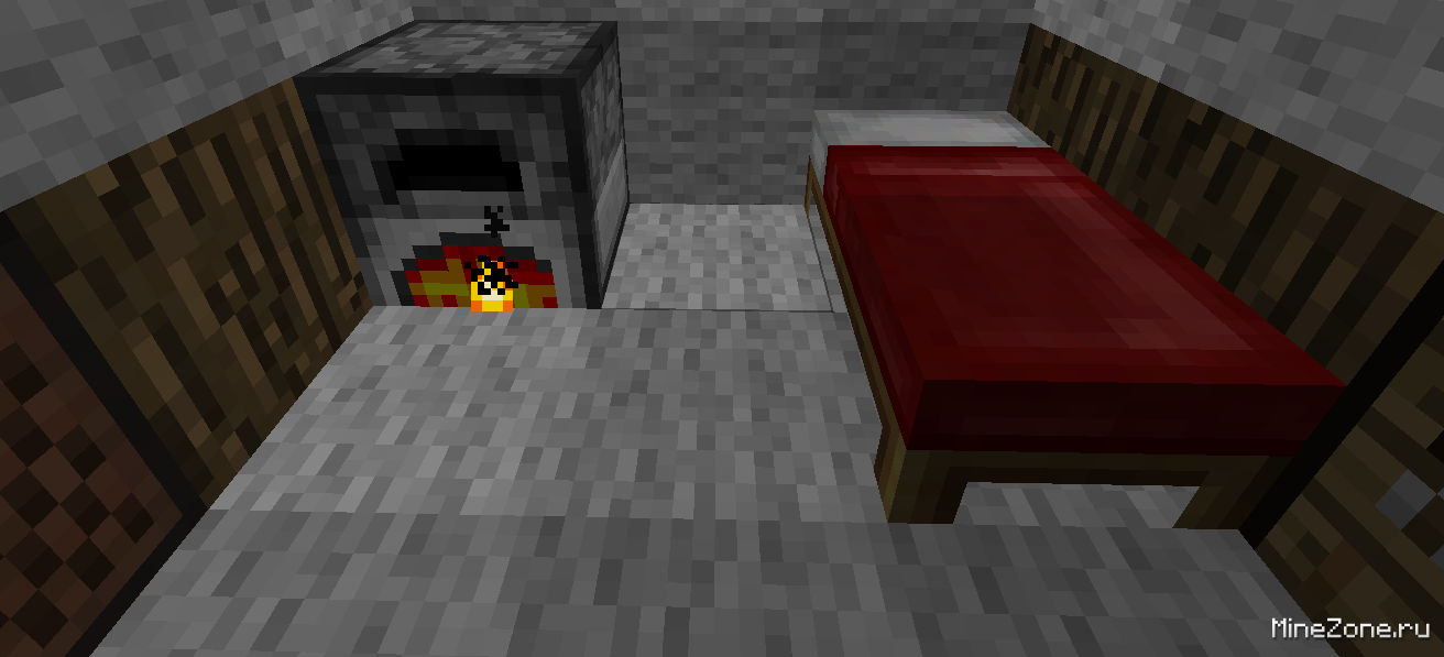 Поставьте дверь,кровать,печь и верстак в палатке.Разместите факела внутри палатки,снаружи будет только костёр. Один факел на 1 блок выше кровати,и два около двери. Теперь в палатке вполне можно заночевать. На улице,в двух блоках от палатки выройте яму,и поставьте в неё адский камень и в виде плюса разместите булыжники(см.рисунок).