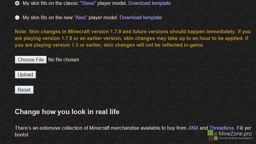 Как вернуть стандартный скин в Minecraft?