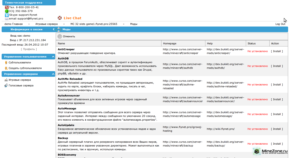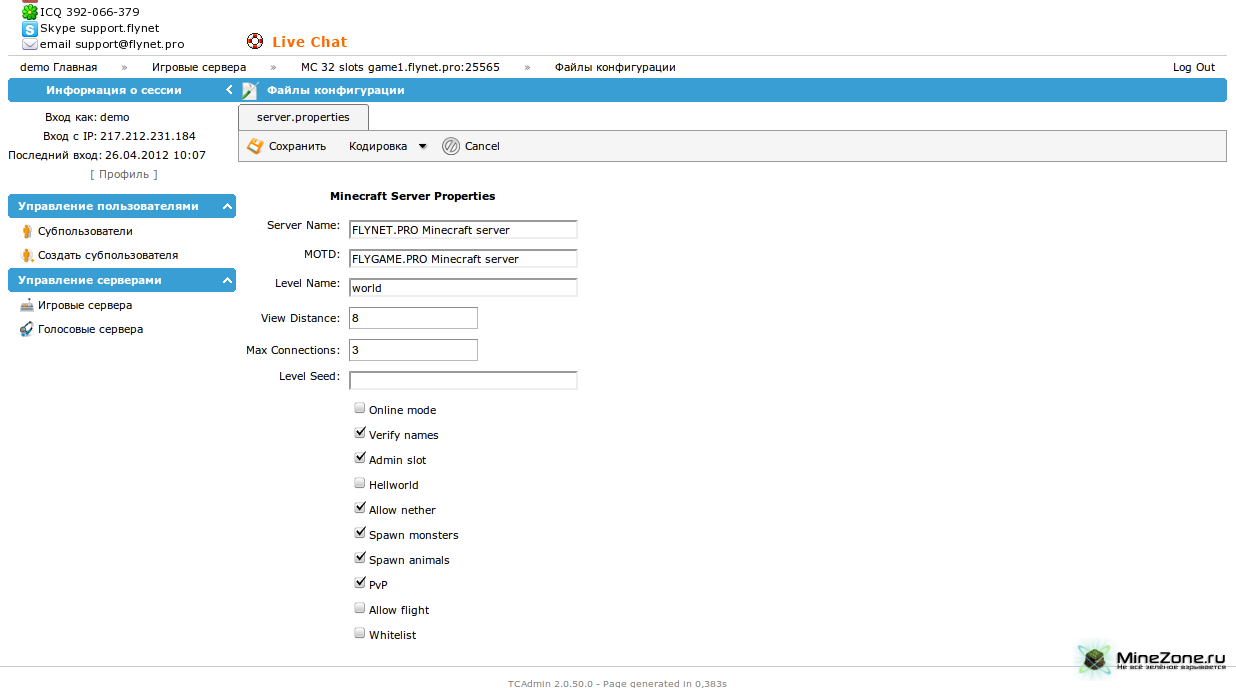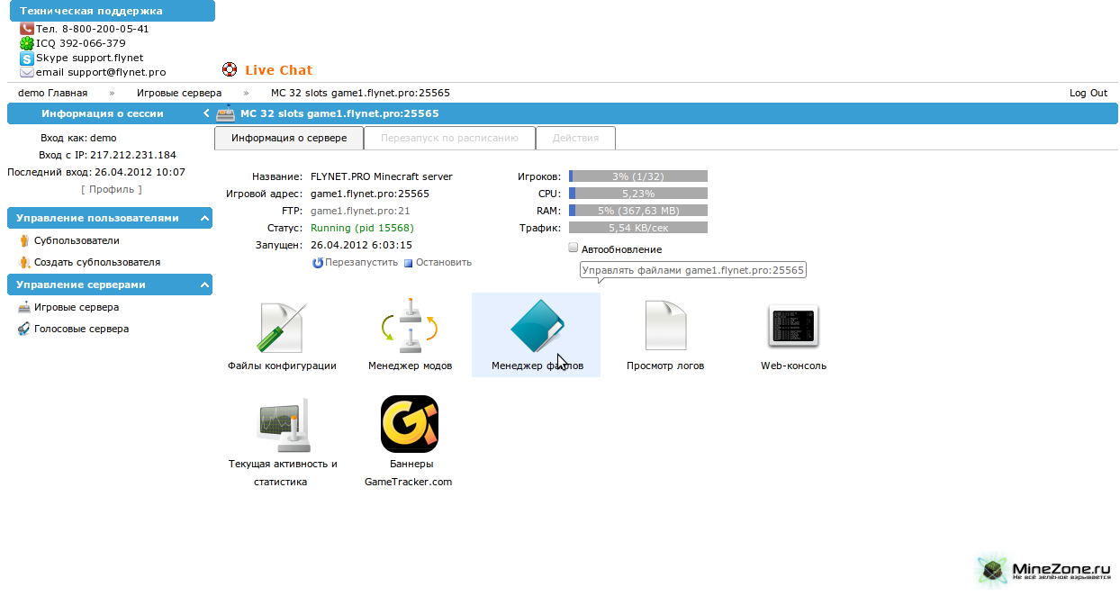 Уже более года портал minezone.pro плодотворно сотрудничает с хостинг-провайдером flynet.pro.