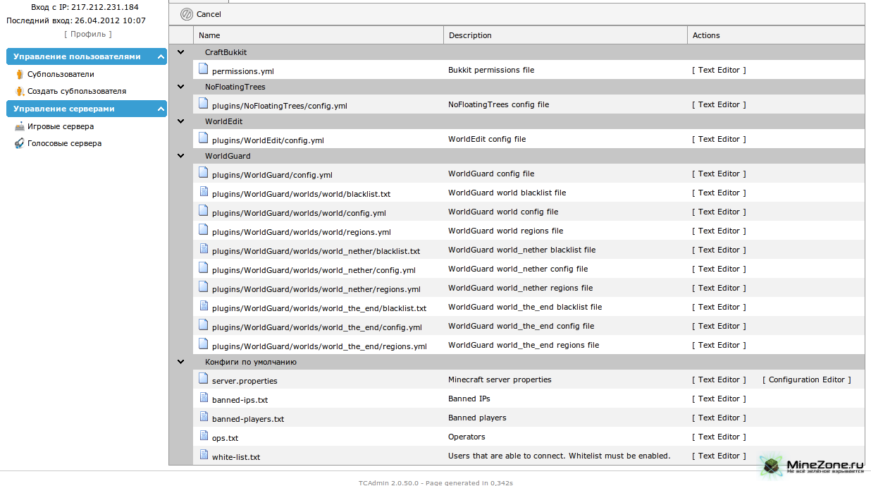 К выбору наиболее заметной для пользователя детали - панели управления сервером - мы подошли с особым вниманием. В результате остановились на TCadmin, по нашим наблюдениям и отзывам пользователей - она наиболее интуитивная и гибкая из ряда рассмотренных нами панелей. Наиболее интересные функции представлены на скриншотах в конце статьи. Так же Вы можете сами, без регистрации, ознакомиться с функционалом в интерактивном режиме: