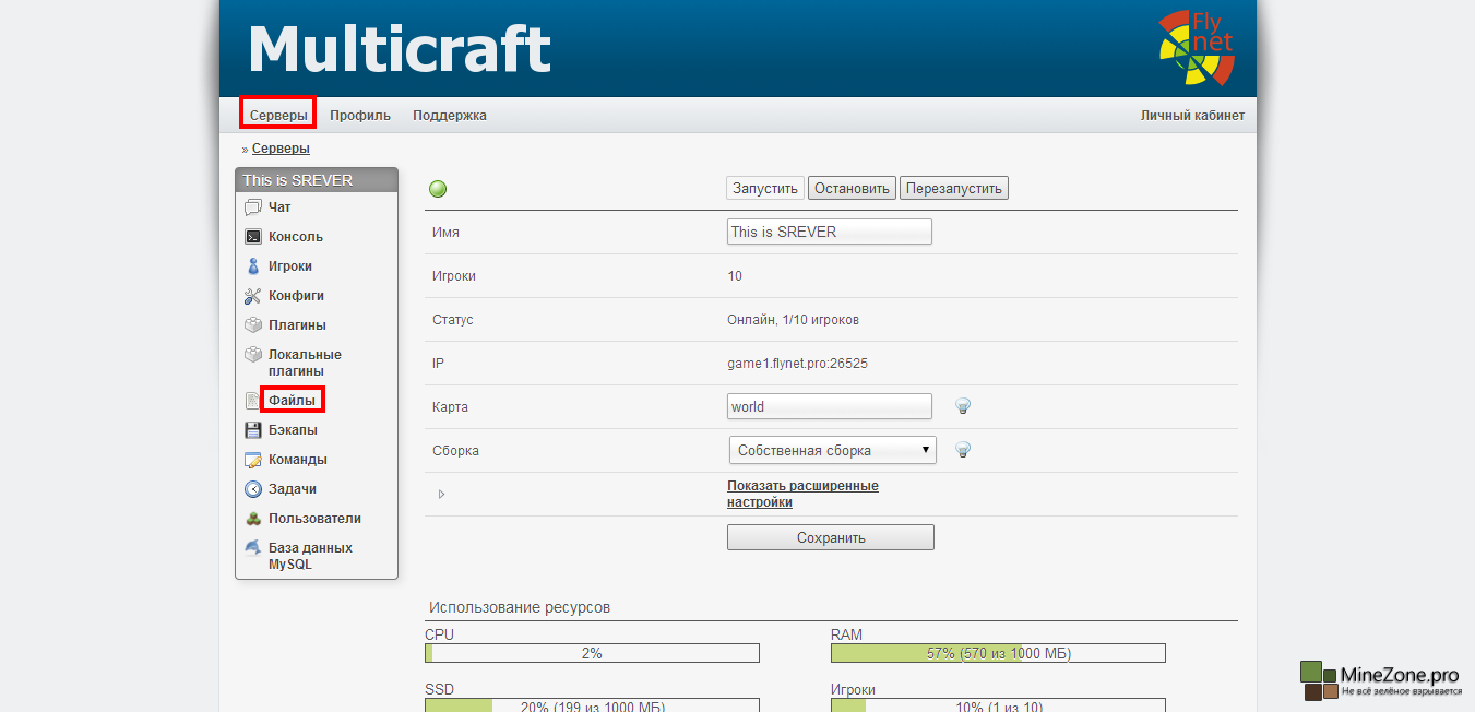 6. Возвращаемся в главное окно управления и перезагружаем сервер.