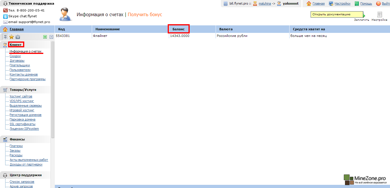Узнать баланс: Клиент - Информация о счетах - Баланс.