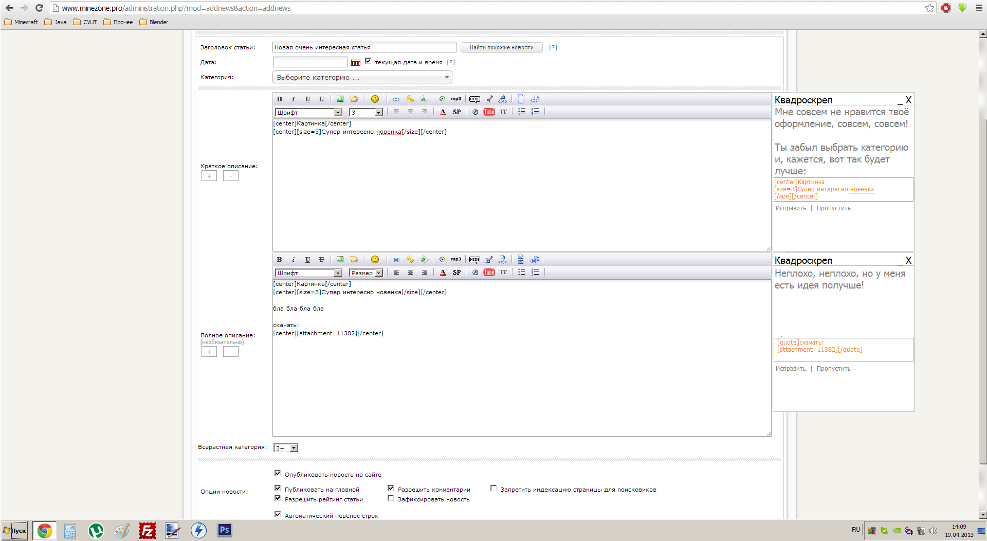 как выложить новость на сайт
