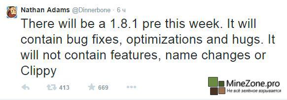 Пререлиз Minecraft 1.8.1 будет выпущен уже на этой неделе. Никаких новых блоков и прочего, только багфиксы, только чистый код.