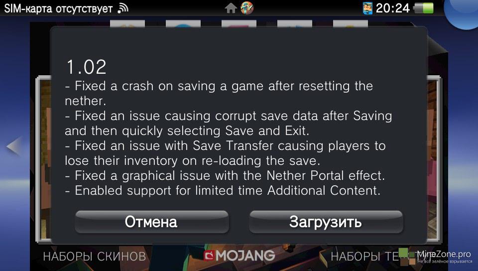Вышло в свет второе обновление для Minecraft PSVita Edition. Большая часть лишь багфиксы, но есть и интересный пункт с новым видом DLC.