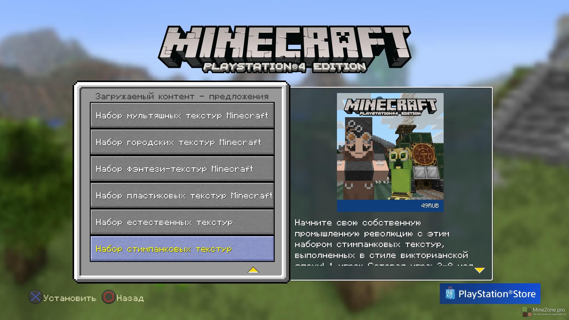 Сегодня стали доступны два дополнительных текстурпака для консольного издания Minecraft: PS4/PS3/PS Vita Edition. Один текстурпак посвящен стимпанку и стоит 49 рублей. Второй же является не просто набором текстур, но мэшапом Skyrim и обойдется в 189 рублей.