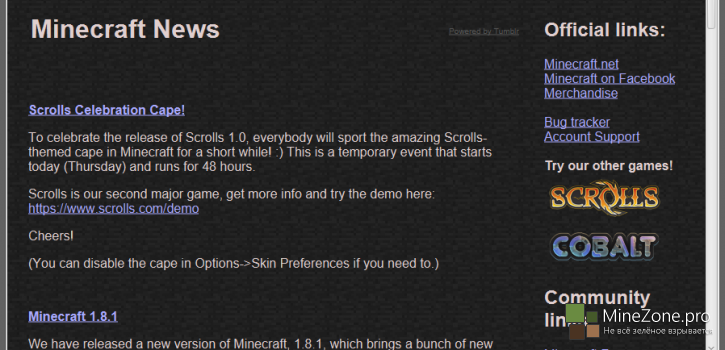 Доступна пока версия для PC, теперь для ее запуска нет необходимости заранее устанавливать Java, лаунчер все сделает сам. Собственно, на этом все плюшки лаунчера и заканчиваются. Нет ни внешних отличий, ни каких-либо улучшений. Разработчики заявляют, что принудительного обновления не будет, но все новые игроки будут получать именно эту версию.
