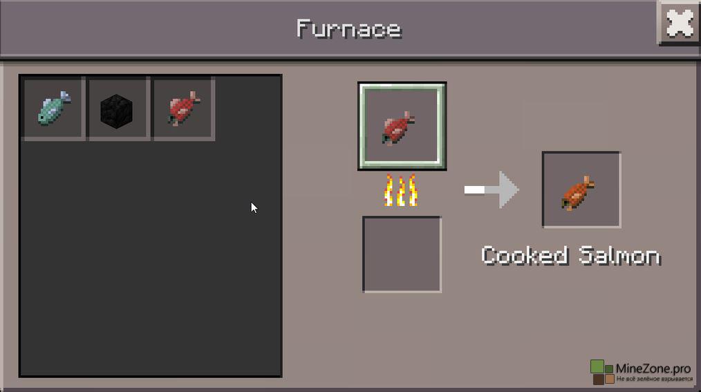 Ага, в следующем обновлении Minecraft: Pocket Edition будет добавлена такая возможность (как, впрочем, и сама механика рыбалки). Все просто, ловите рыбу, закидываете в печку, и зажариваете ее на блоке угля, все как в настольной версии.