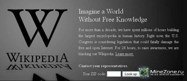 Википедия же просто объявила этот день, днем «затмения», поставив (опять же, в англоязычном сегменте) на главной странице заглушку, со словами: "Представь свой мир без свободы знаний".