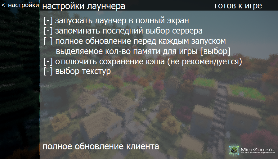 - Текстуры можно будет выбрать только через лаунчер
