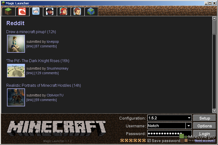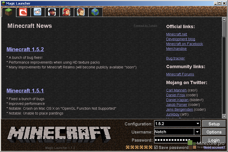 - Удобное слежение за новостями из мира Mojang, разделенное на несколько отделов.