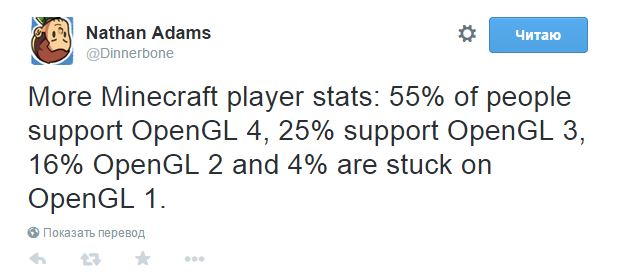 | «Система 55% поддерживает OpenGL 4, у 25% есть поддержка OpenGL 3, 16% - OpenGL 2 и 4% с OpenGL 1» |