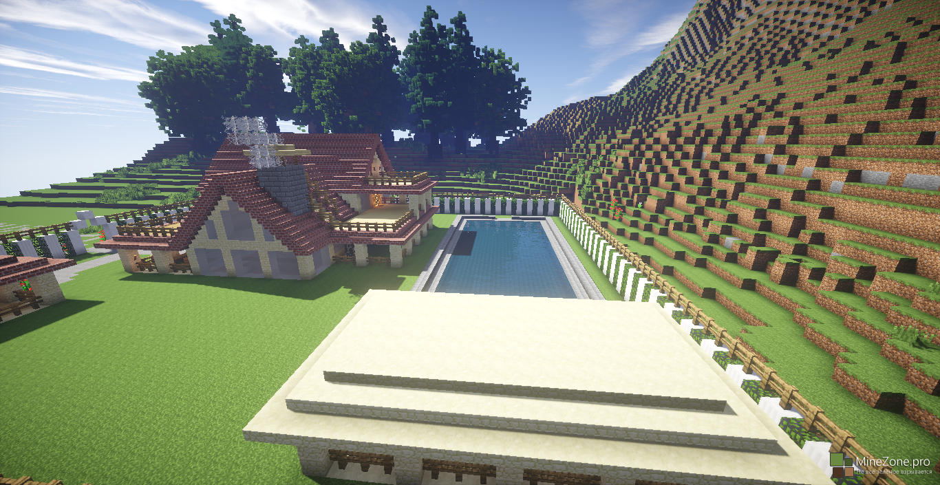 Cадик вокруг дома, красивый внешний вид здания, бассейн. Первые впечатления - красота.